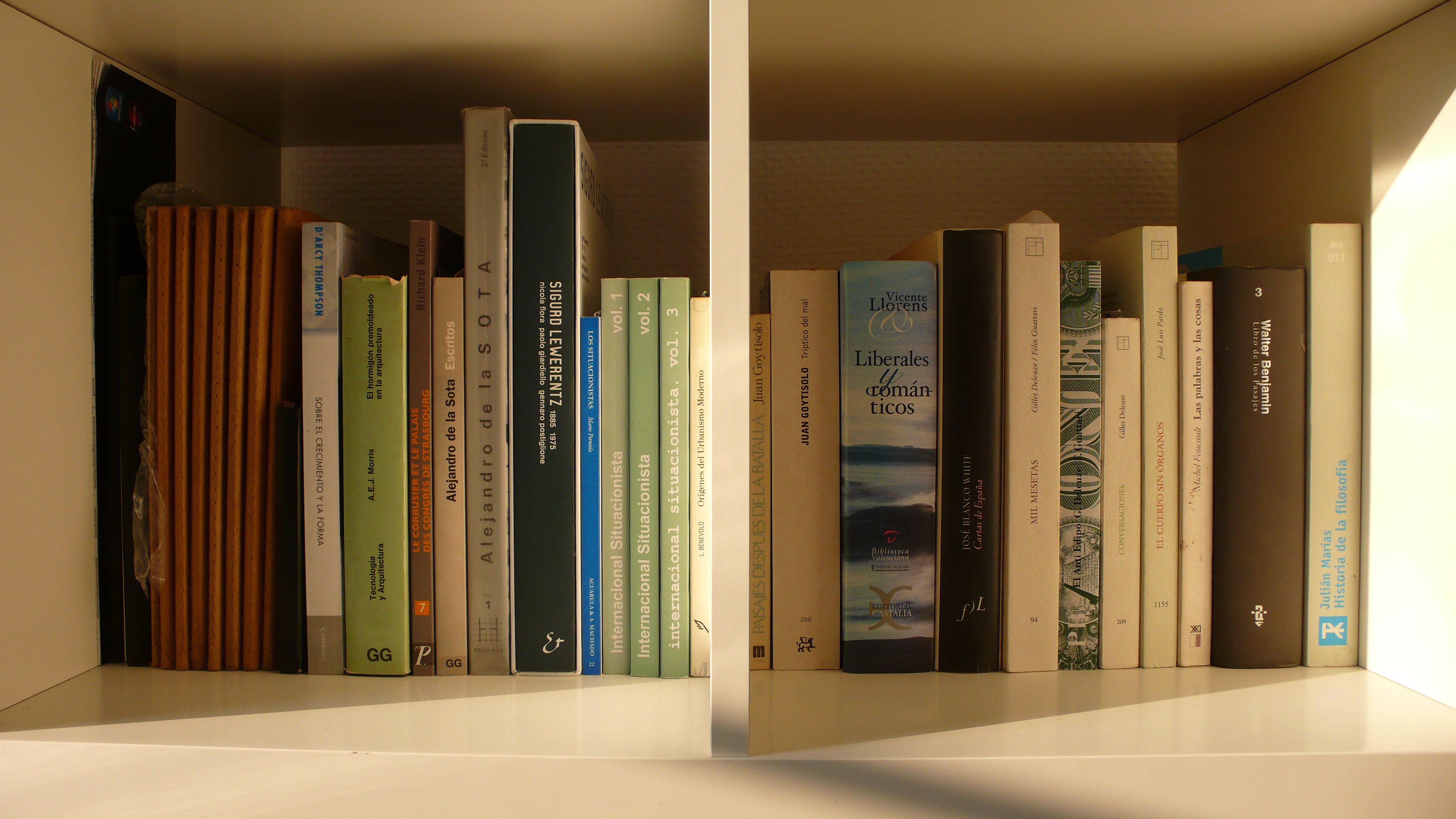 Los libros son mérito de mi querido amigo Gabriel. la foto es un regalo que me envío después de una maravillosa conversación con cervezas en un atardecer de marzo. Buen lector, como lo suelen ser los buenos arquitectos.